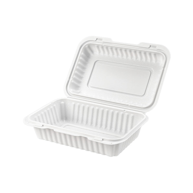 This product is a 9"x6"x2.8" white hinged container made from BPA-free polypropylene, featuring a vent hole and snap rim closure for secure sealing and optimal freshness. The vented design helps release steam, making it ideal for hot food applications. This container is microwavable, freezer-safe, and dishwasher-safe, offering excellent convenience for both customers and food service operators. Its stackable structure allows for easy and efficient storage. Each case includes 150 containers.