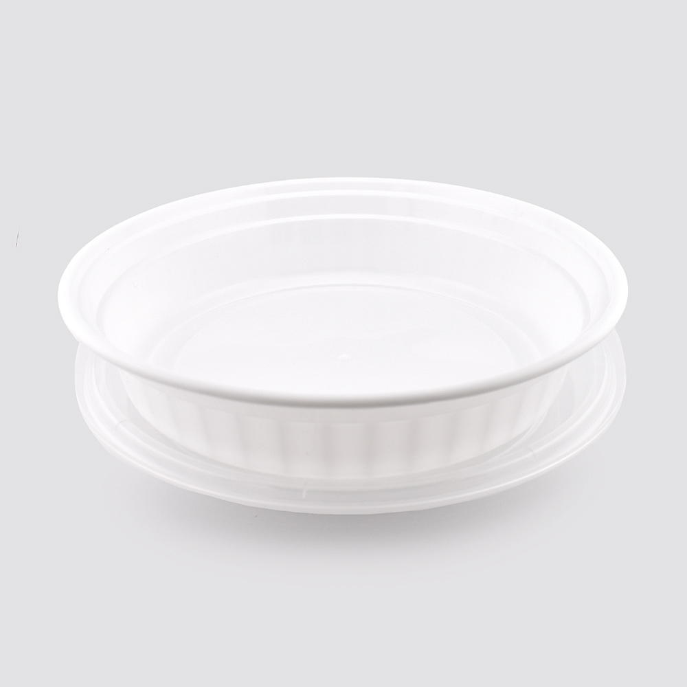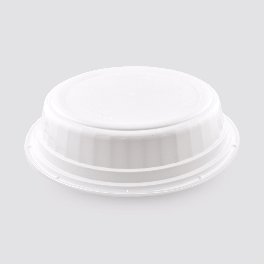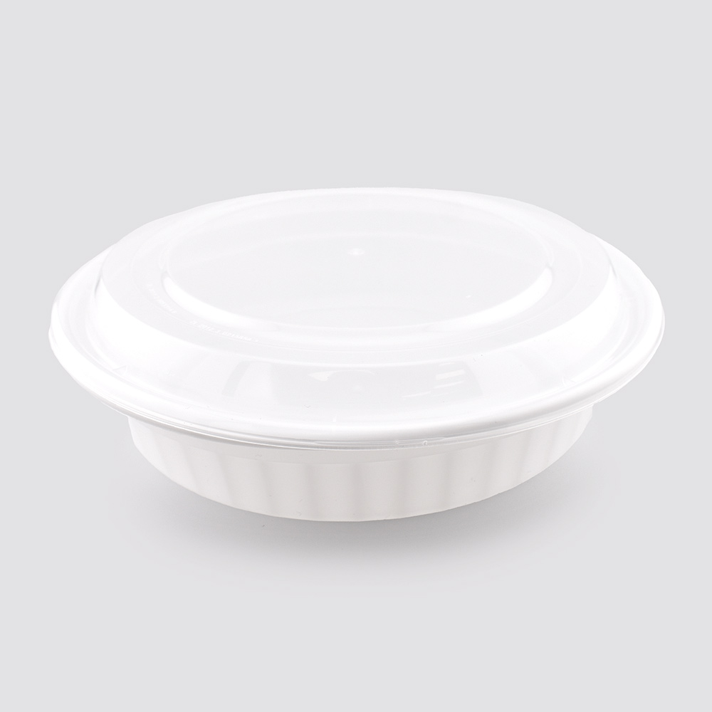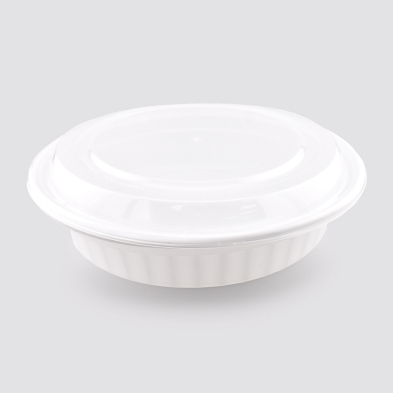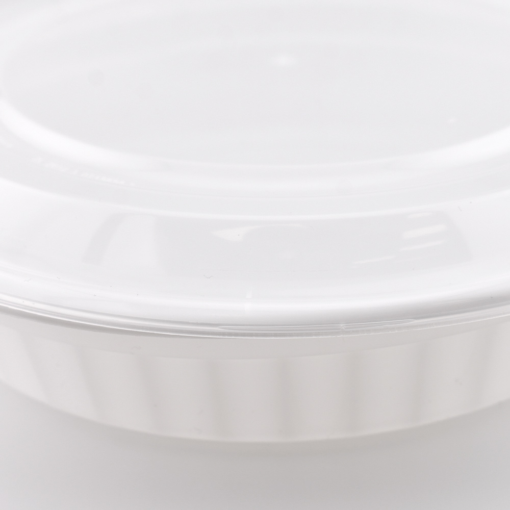 This product is a 48oz white round food container with a single compartment, offering a sleek and practical solution for packaging larger portions of food. Made from BPA-free, recyclable polypropylene, this container is freezer safe, microwavable, and dishwasher safe, making it ideal for a full cycle of food storage, reheating, and reuse. Its leak-proof design and durable construction ensure that contents remain secure during transport, while the stackable shape provides efficient storage in busy foodservice environments. Perfect for soups, salads, pasta, rice bowls, or entrees, this container combines strength, convenience, and clean presentation. Each case includes 150 complete sets with matching translucent lids.