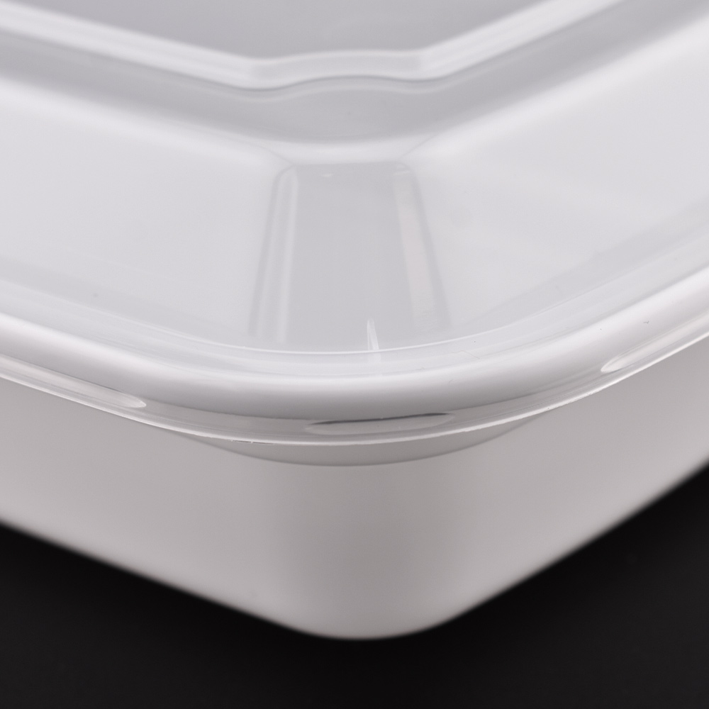 This product is a rectangular, reusable PP takeout food container designed for single-compartment storage with a clean white base and a translucent lid for easy visibility. Ideal for packaging prepared meals or takeout items, this container is built for versatility and durability — it can seamlessly transition from the refrigerator to the microwave, and then to the dishwasher without losing shape or strength. Made from BPA-free, recyclable polypropylene, it features excellent toughness, is leak-proof, and stackable, making it a practical and space-saving option for food service businesses. Whether you’re storing leftovers or delivering meals, this container ensures food remains fresh, secure, and easily accessible.