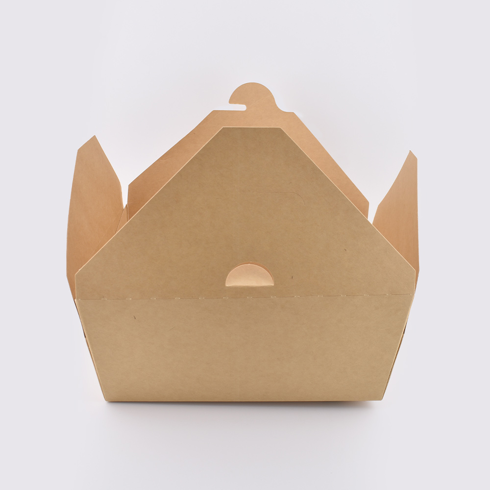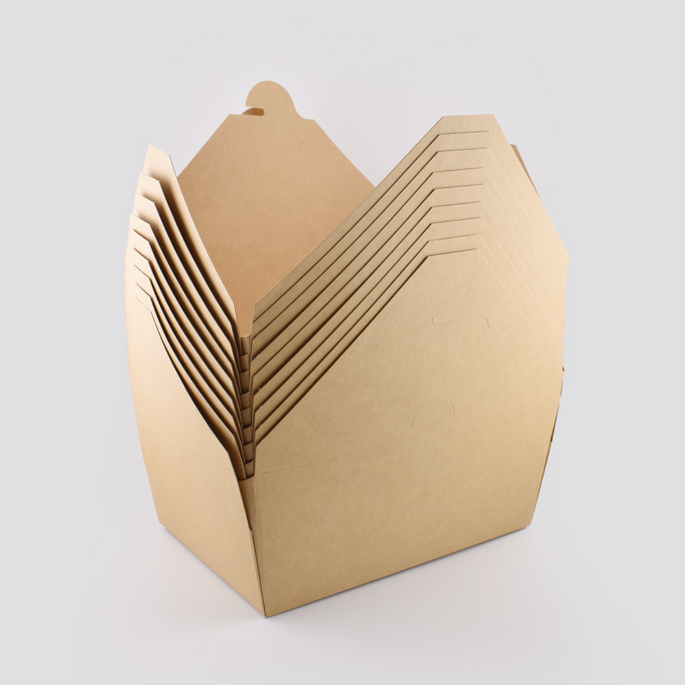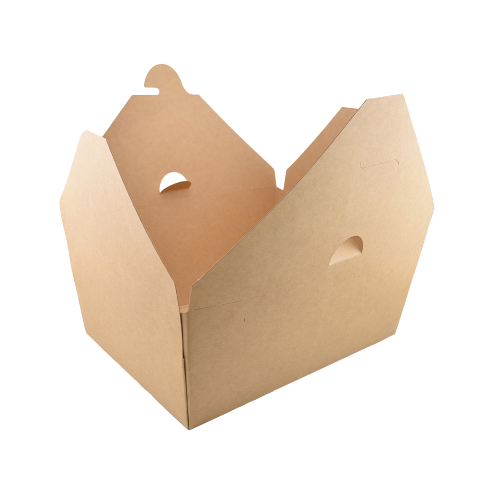 Made from recycled paperboard, these durable takeout boxes feature a grease- and moisture-resistant lining, making them ideal for both hot and cold foods. The classic, stackable, one-piece design requires no assembly and provides an upscale appearance. Flaps open wide for easy access. Boxes retain heat, vent steam, and resist leaks—perfect for items with sauces or gravies. They tolerate moderate heat-lamp exposure and help convey an eco-friendly message to your guests. Packaged in recyclable paperboard and polyolefin plastic wrap—please recycle where facilities exist.