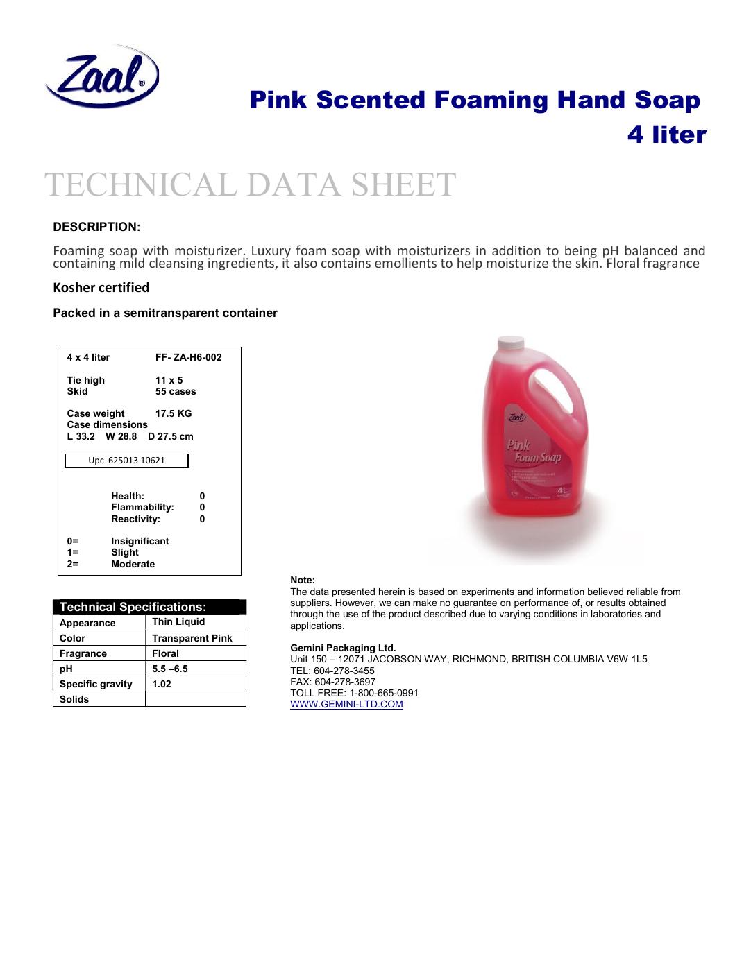 A gentle, neutral pH, pink foam soap for use with foam dispensers. It has a mild fragrance and has conditioners.